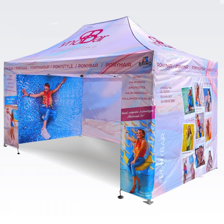 Olenemata sellest, kas tegemist on väikese 2x2 m telgiga või suure 4x8 m reklaamtelgiga, saame trükkida sellele värvilisi pilte, rakendada eraldi graafilisi elemente või katta kogu telgi soovitud mustriga.