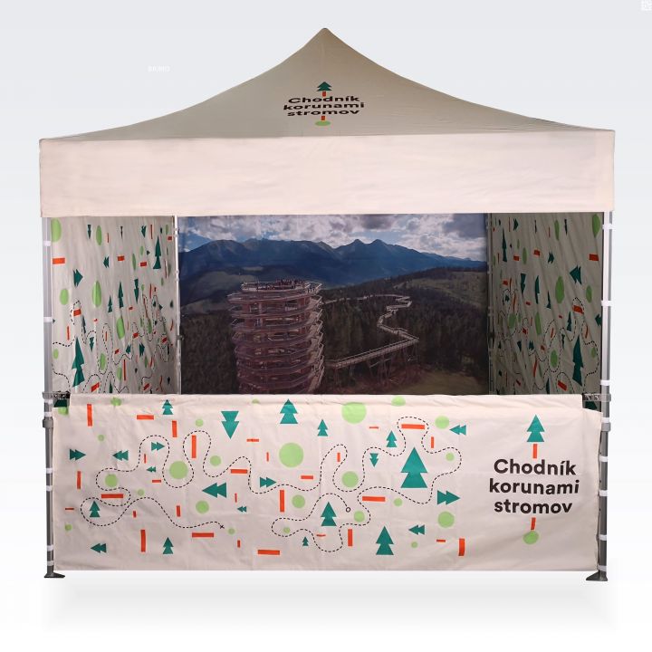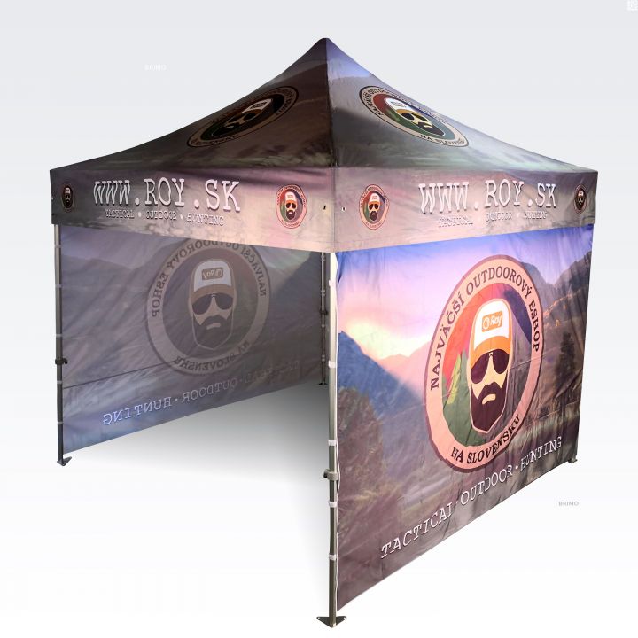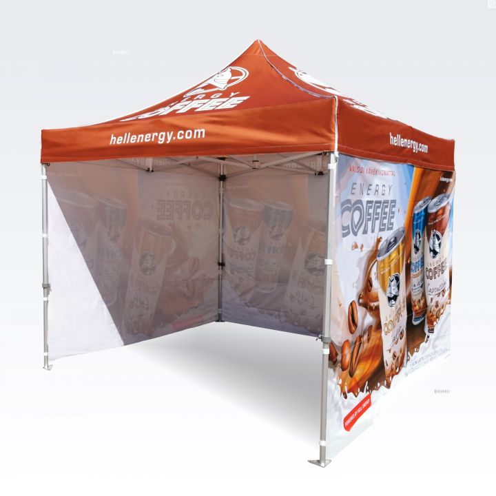 Olenemata sellest, kas tegemist on väikese 2x2 m telgiga või suure 4x8 m reklaamtelgiga, saame trükkida sellele värvilisi pilte, rakendada eraldi graafilisi elemente või katta kogu telgi soovitud mustriga.